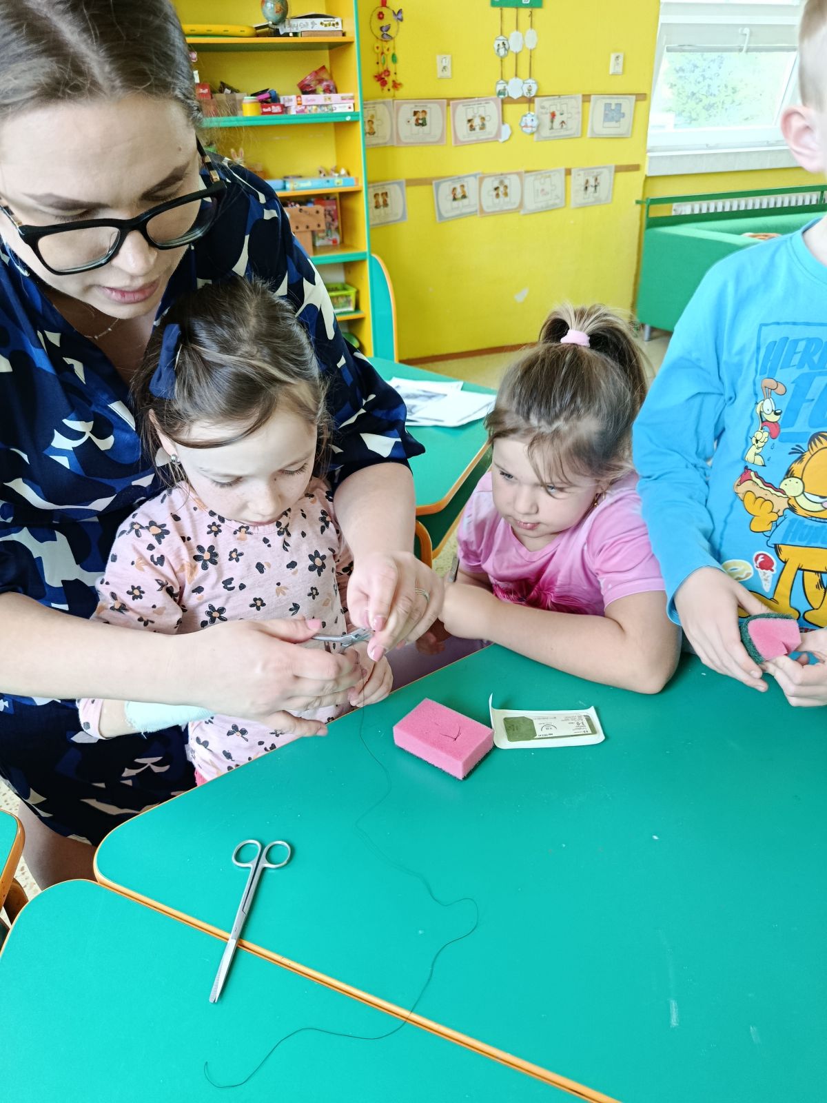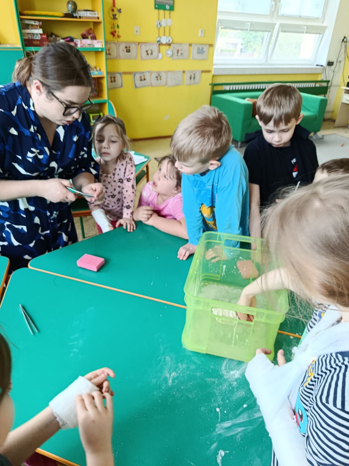 Ve školní družině se uskutečnila zajímavá beseda s lékařkou Lenkou Přikrylovou. Děti se dozvěděly zajímavosti o povolání lékaře, prohlédly si rentgenové snímky a hádaly, o jakou část těla se jedná. Vyzkoušely si sádrování ruky a také si mohly vyzkoušet šití stehů do houbičky na nádobí pomocí doktorských nástrojů.